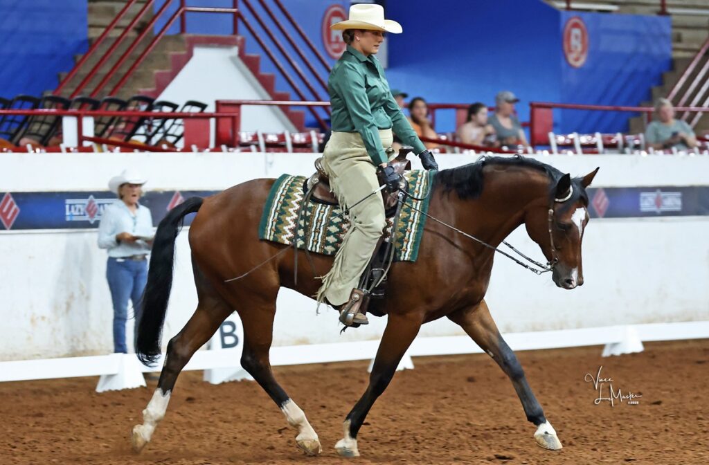 Leslie Browder, an amateur from Las Vegas, won the Western Dressage Seat Combined Equitation Intermediate Amateur class with a score of 77.5%.
